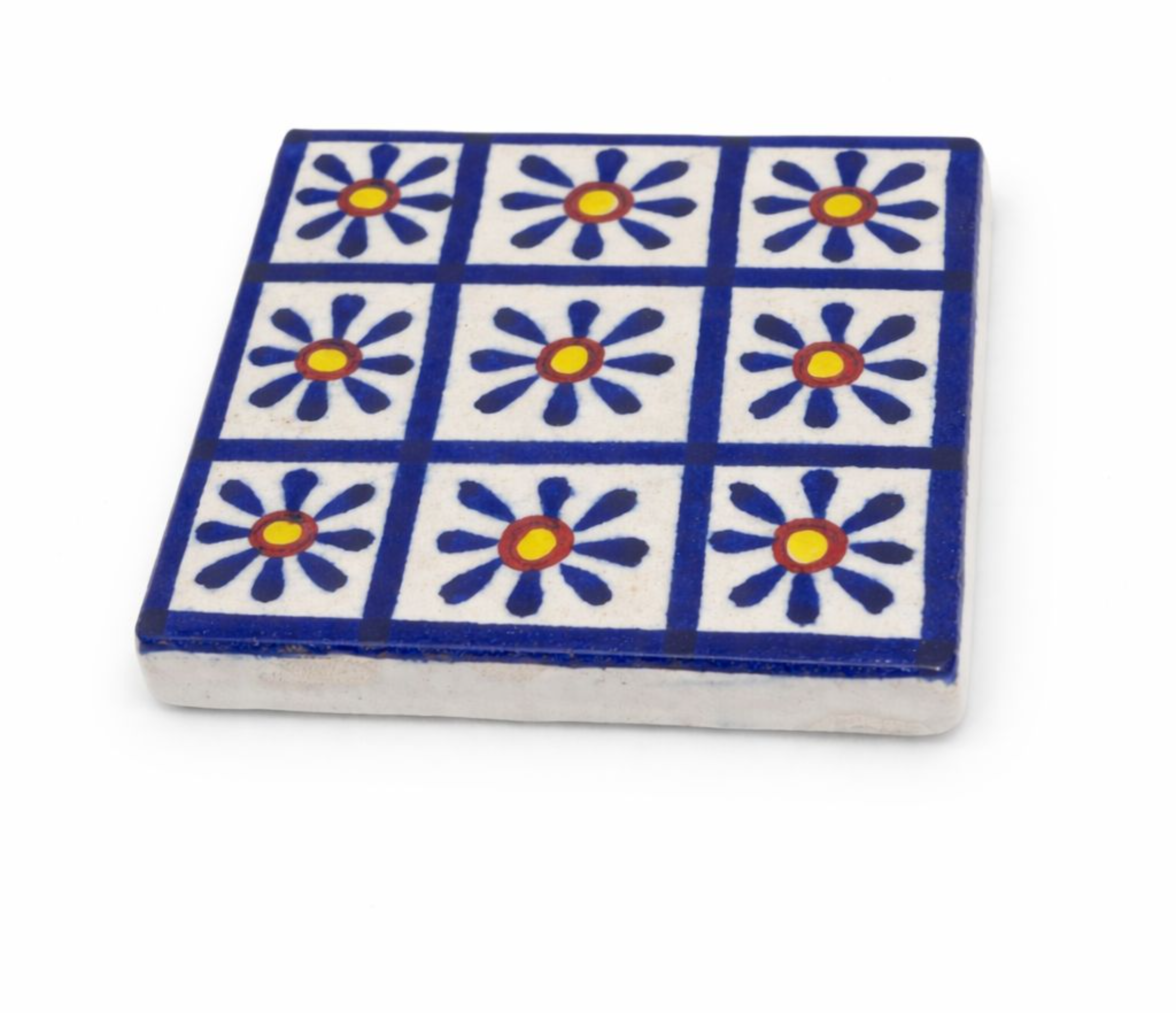 Add timeless charm to your tea and coffee moments with this handcrafted Blue Pottery coaster, featuring a classic tiled floral design in deep cobalt blue with warm yellow and rust accents. Inspired by traditional ceramic patterns, this coaster brings a beautiful blend of heritage and minimal elegance to your table setting.